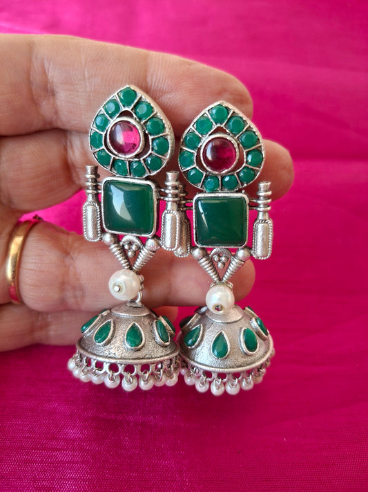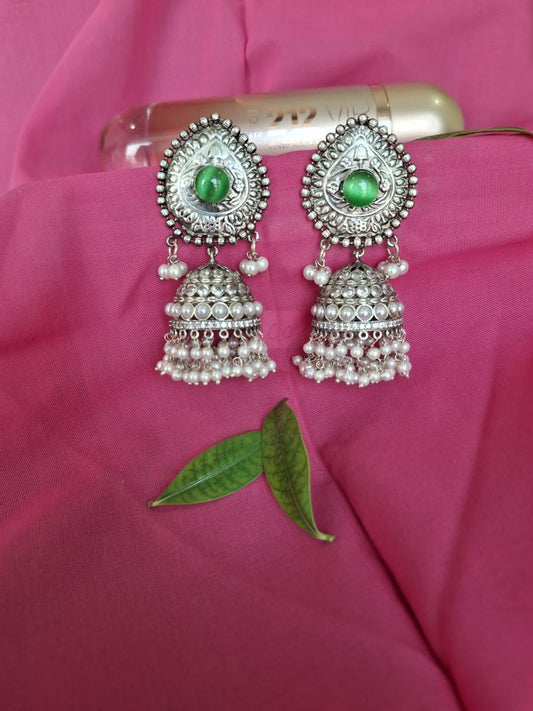 EMERALD JIYA SILVER POLISHED JHUMKI