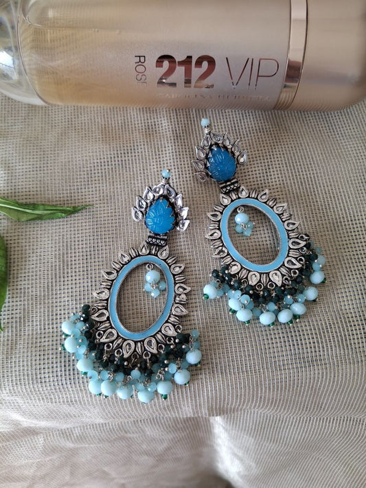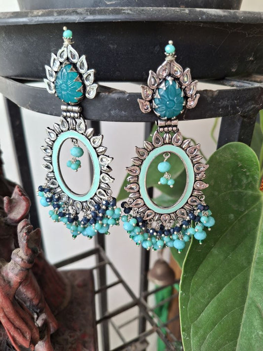 TURQUOISE AADHIRA OXIDISED CHANDBALIS
