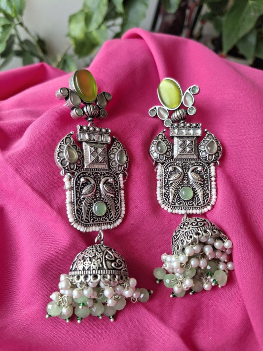 LIGHT GREEN ANAYA OXIDISED JHUMKI