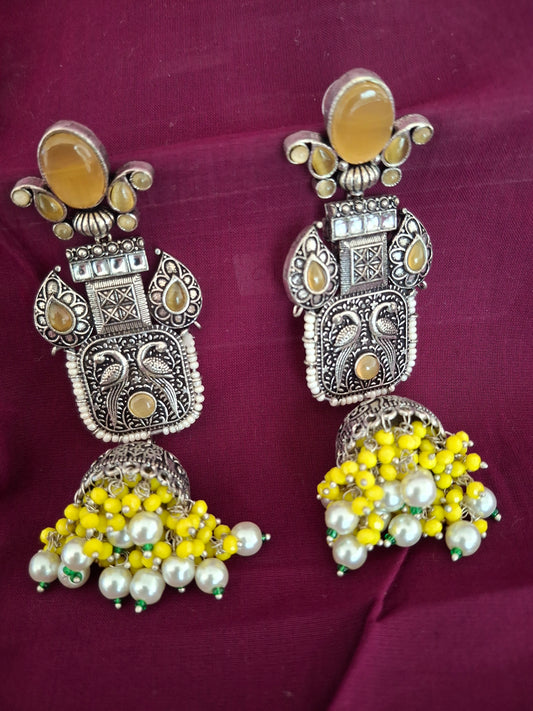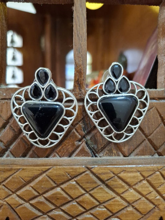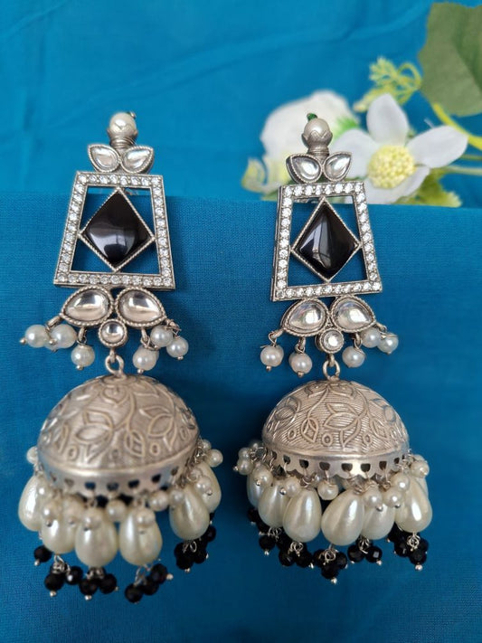 BLACK ASHVIKA SILVER POLISHED JHUMKI
