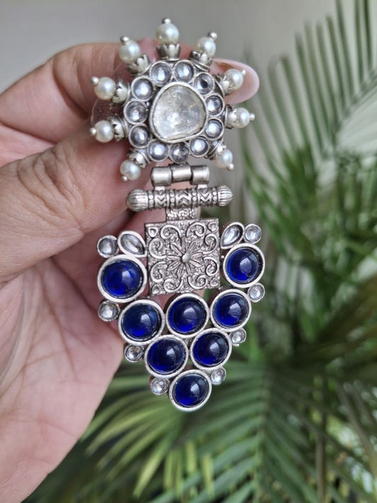 NAVY BLUE AMAYRA SILVER POLISHED DANGLER