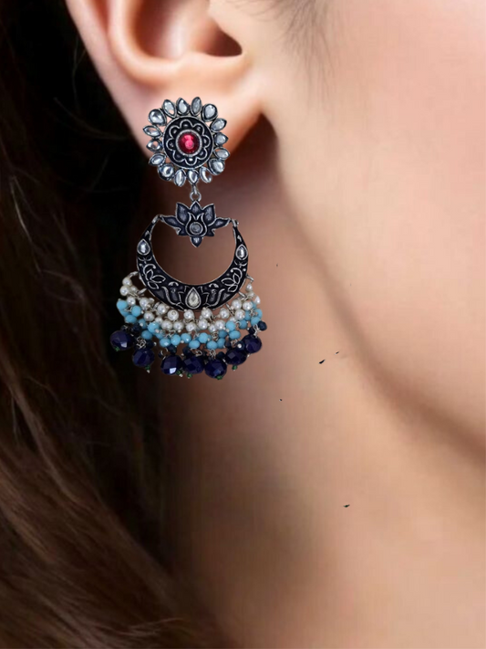 NAVY BLUE AADHIRA OXIDISED CHANDBALIS