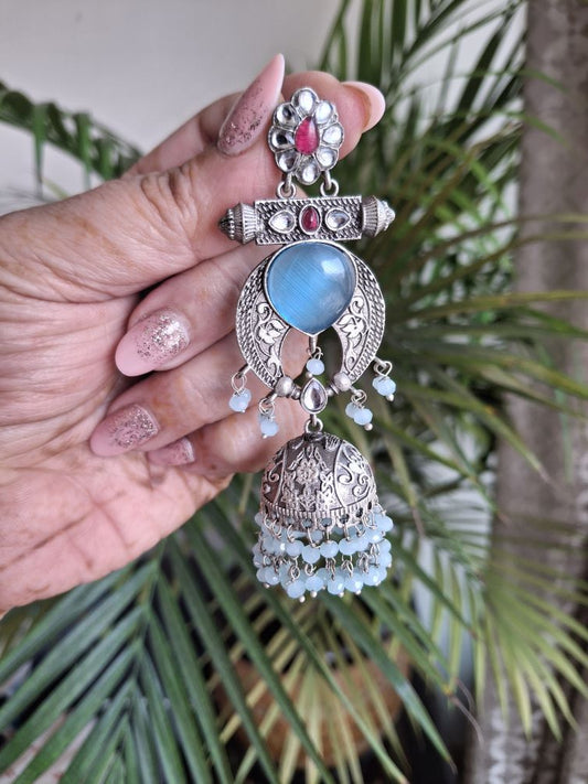 LIGHT BLUE AADVIKA SILVER POLISHED JHUMKA