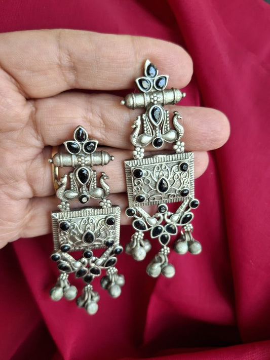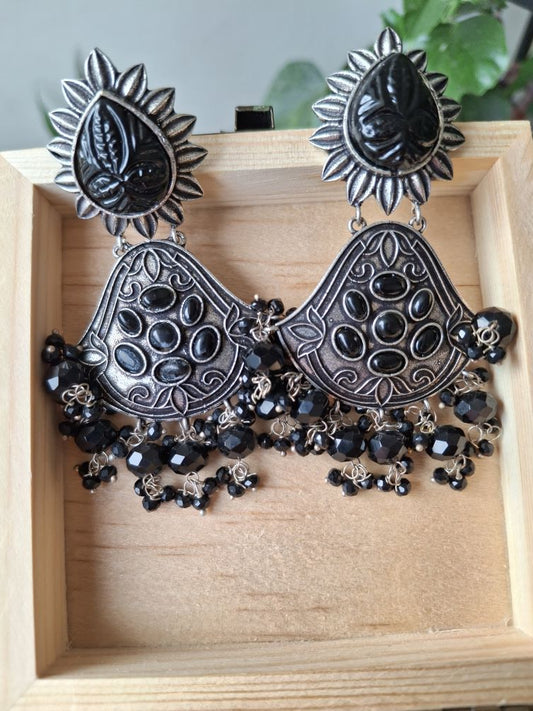 BLACK ASHVIKA SILVER POLISHED JHUMKI