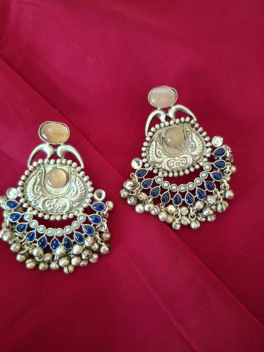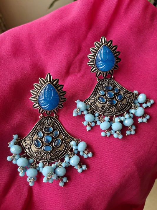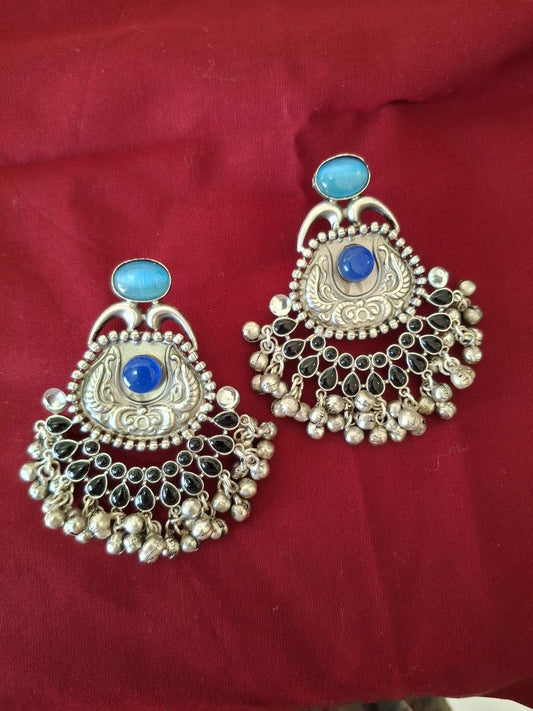 BLACK LIGHT BLUE AAROHI SILVER POLISHED CHANDBALIS