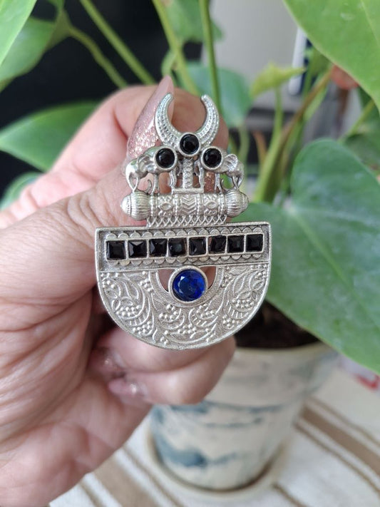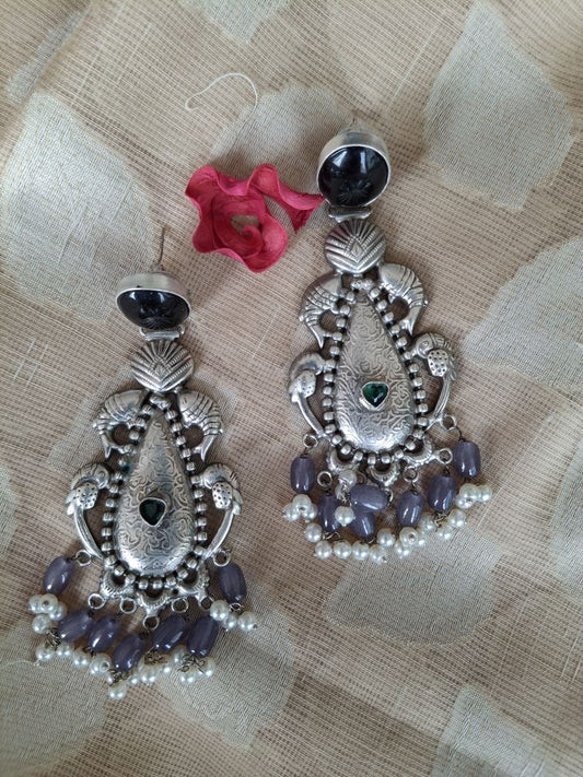 BLACK TURQUOISE AAROHI SILVER POLISHED CHANDBALIS