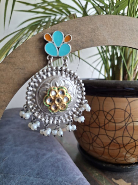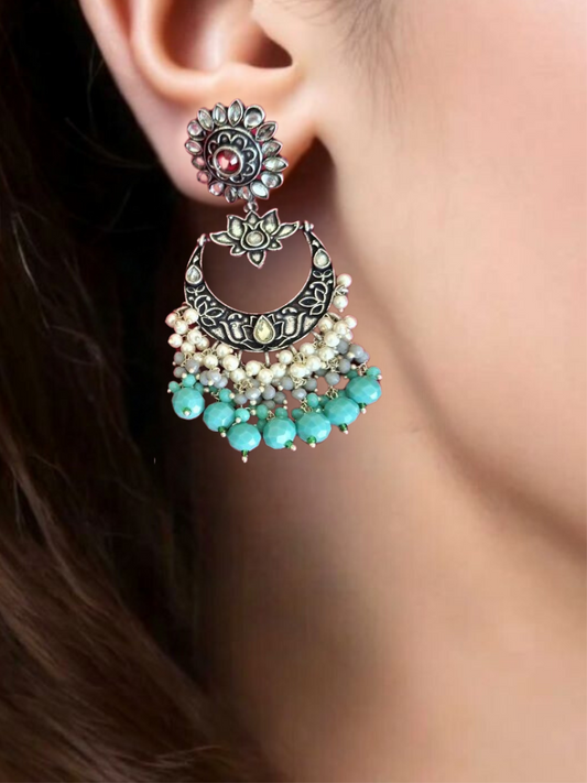TURQUOISE AADHIRA OXIDISED CHANDBALIS
