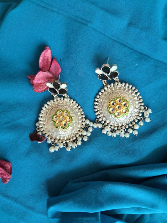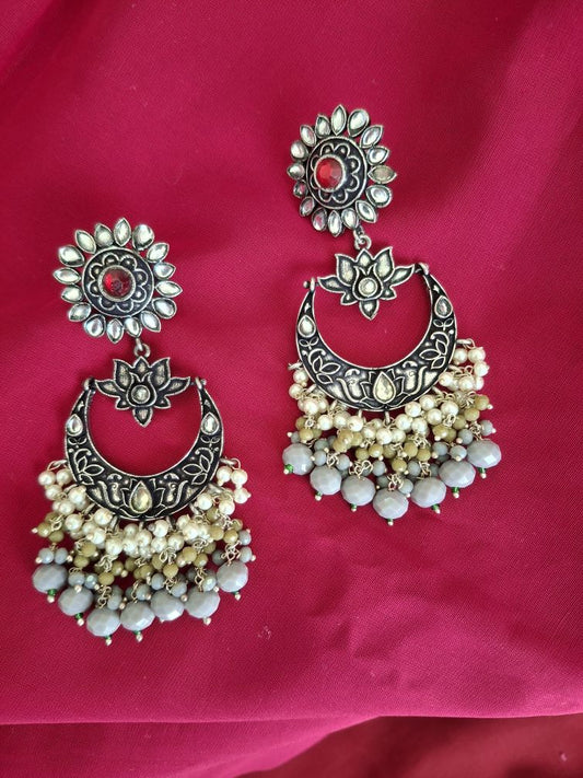 GRAY AADHIRA OXIDISED CHANDBALIS