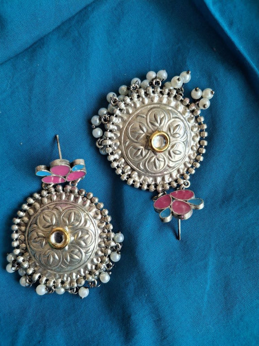 PEACH. AIRA SILVER POLISHED CHANDBALIS