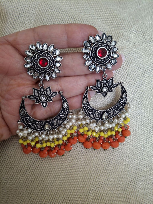 ORANGE AADHIRA OXIDISED CHANDBALIS
