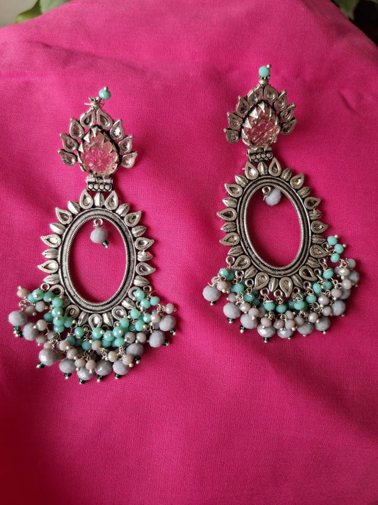 LIGHT GREEN AADHIRA OXIDISED CHANDBALIS