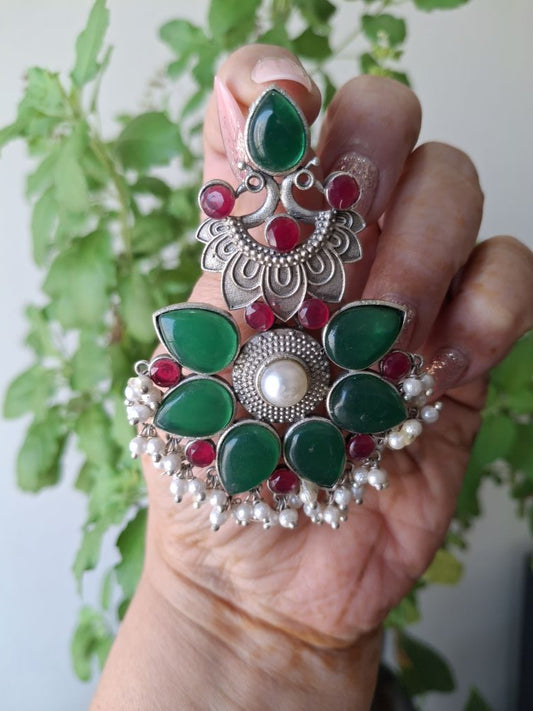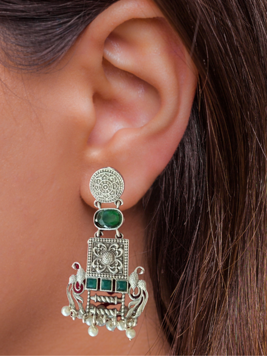 EMERALD KAVYA SILVER POLISHED DANGLER