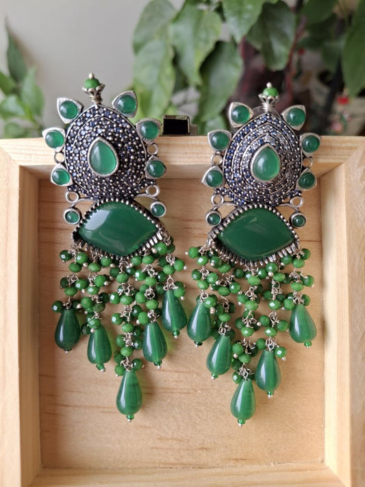 EMERALD MAHIRA SILVER POLISHED JHUMKI