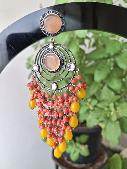 LEMON YELLOW ADVIKA OXIDISED DANGLER