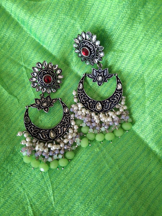 LIGHT GREEN AADHIRA OXIDISED CHANDBALIS