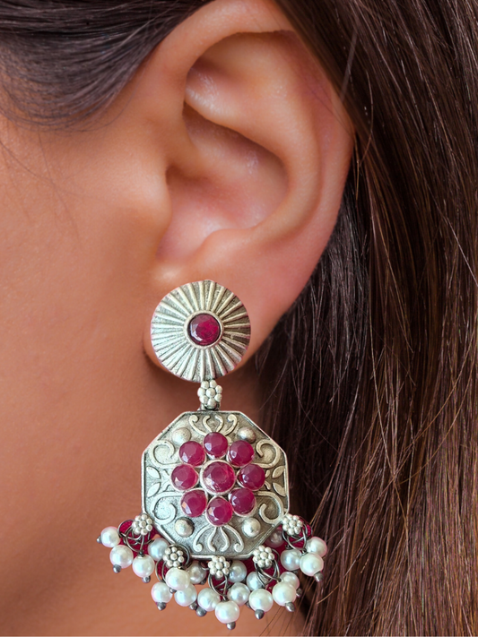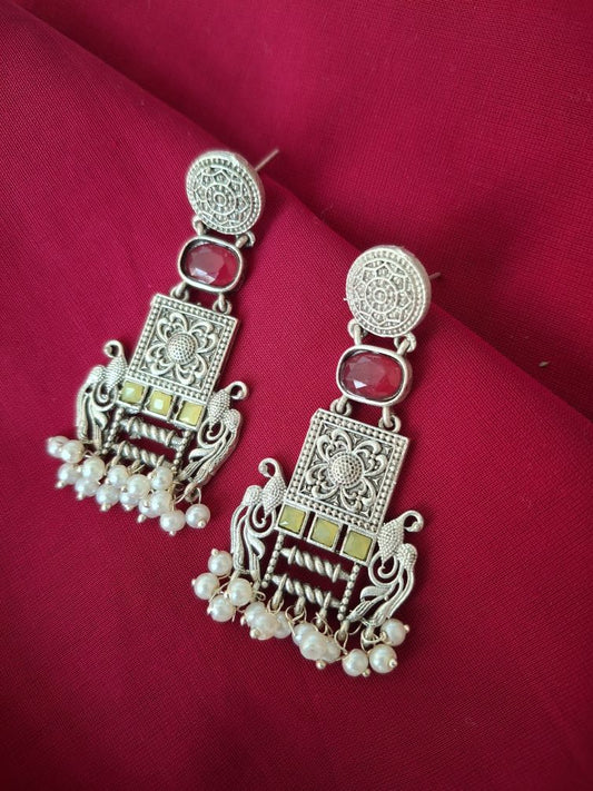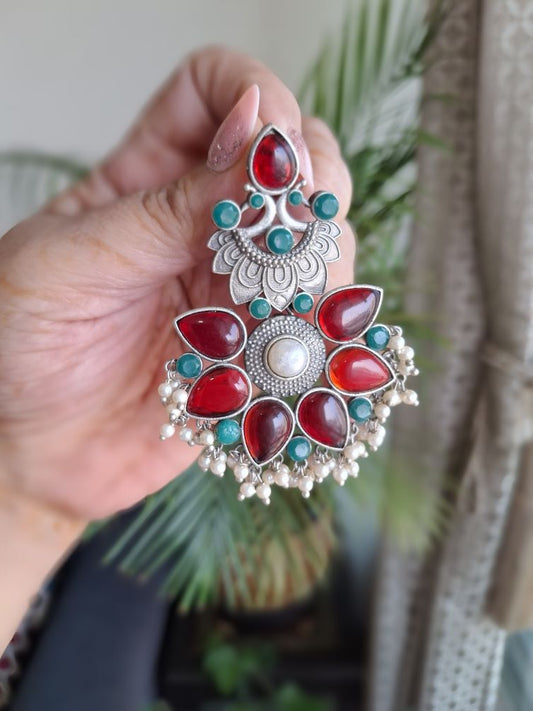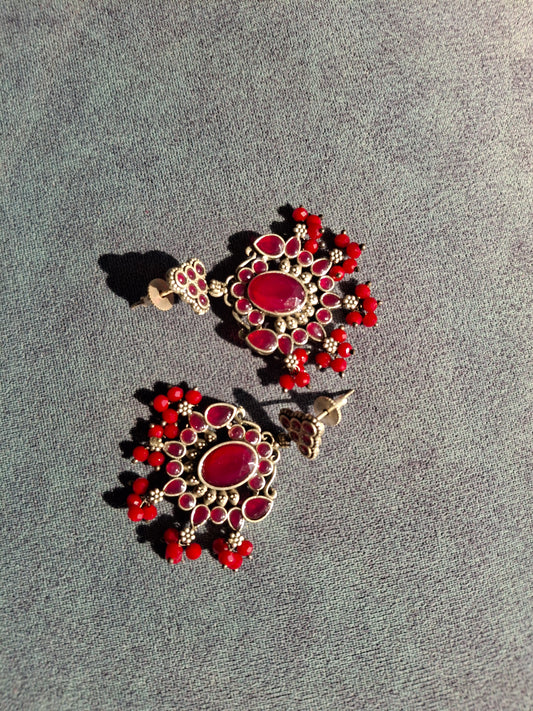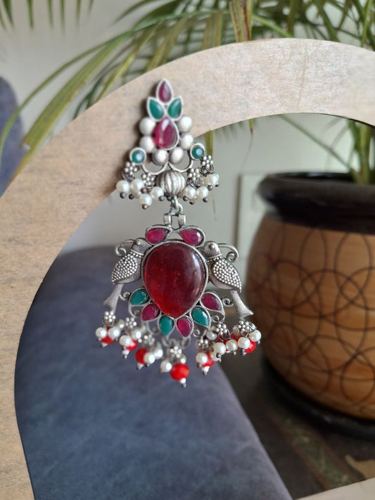 RED GREEN KYARA SILVER POLISHED DANGLER