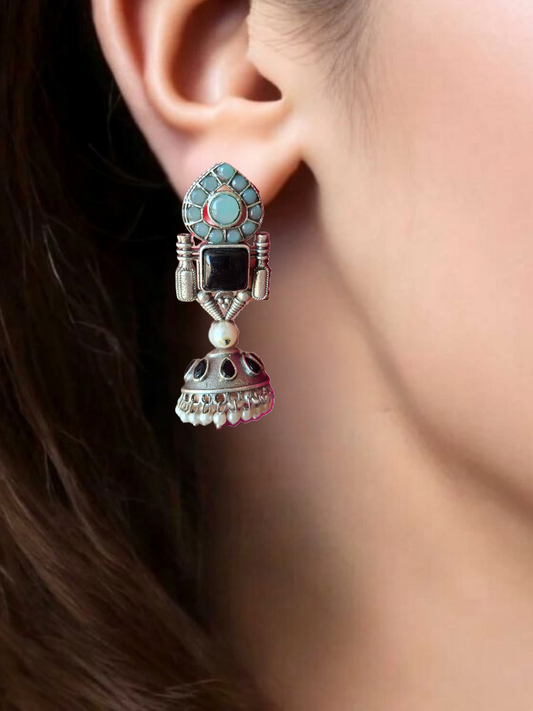 BLACK TURQUOISE JIYA SILVER POLISHED JHUMKI
