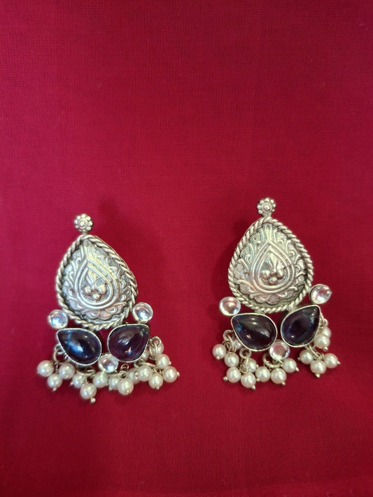 BLUE & WHITE MISHIKA SILVER POLISHED DANGLERS